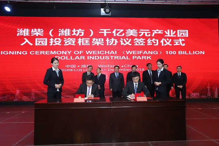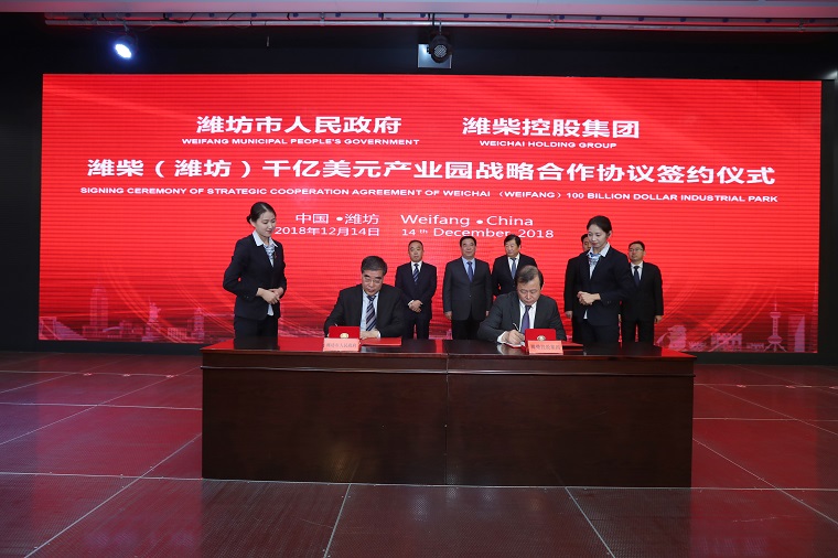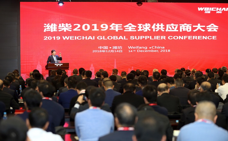 在12月14日舉行的2019年全球供應商大會上,濰柴總結2018年成績,現場舉行了第600萬臺發動機下線儀式,并與濰坊市政府共同啟動了建設濰柴(濰坊)千億美元產業園規劃。