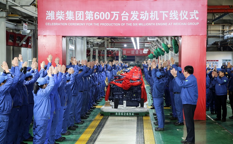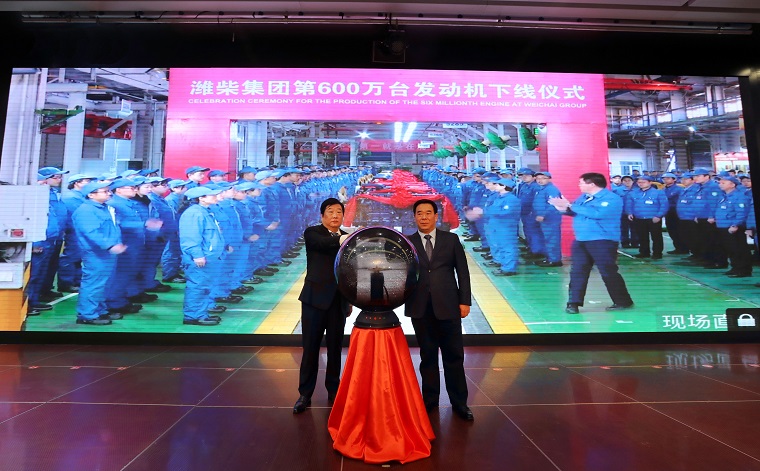當天上午,濰柴舉行了第600萬臺發動機下線。濰坊市委書記、市人大常委會主任劉曙光和譚旭光董事長在會場共同按下啟動按鈕后,濰柴一號工廠一排披紅掛彩的WP9H/10H發動機,在員工的簇擁下順利下線。