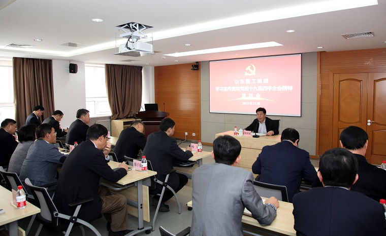 根據(jù)國資委統(tǒng)一安排部署,11月29日下午,省國資委黨委委員、副主任邵澤武同志到山東重工集團總部,為廣大黨員干部宣講黨的十九屆四中全會精神。