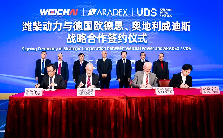 2020年1月15日上午,濰柴動力分別與德國歐德思公司、奧地利威迪斯公司在山東濟南簽署戰略合作協議,正式開啟合作新征程。山東省副省長凌文、山東省相關領導以及媒體代表等,共同見證了這一歷史時刻。