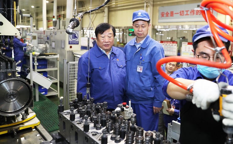 在天然氣發(fā)動(dòng)機(jī)公司,譚旭光重點(diǎn)了解產(chǎn)能情況,他說,要加快智能制造步伐,提高自動(dòng)化水平,全面提高生產(chǎn)效率,全力滿足旺盛的市場需求。