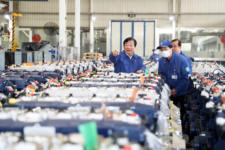 在一號(hào)工廠,譚旭光詳細(xì)了解濰柴H平臺(tái)高端動(dòng)力的市場配套情況。他提出,要全力戰(zhàn)高產(chǎn)、保訂單,搶占高端市場,堅(jiān)決走高端化發(fā)展之路。