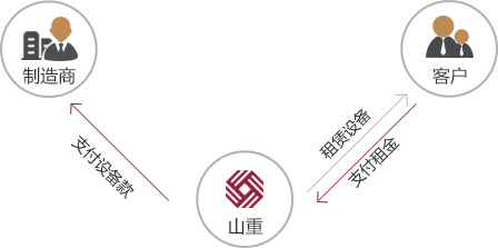 山重租賃從制造商或經(jīng)銷商處購買物流設(shè)備,出租給客戶使用;山重租賃向工廠或經(jīng)銷商支付設(shè)備款,客戶按期向山重租賃支付租金。